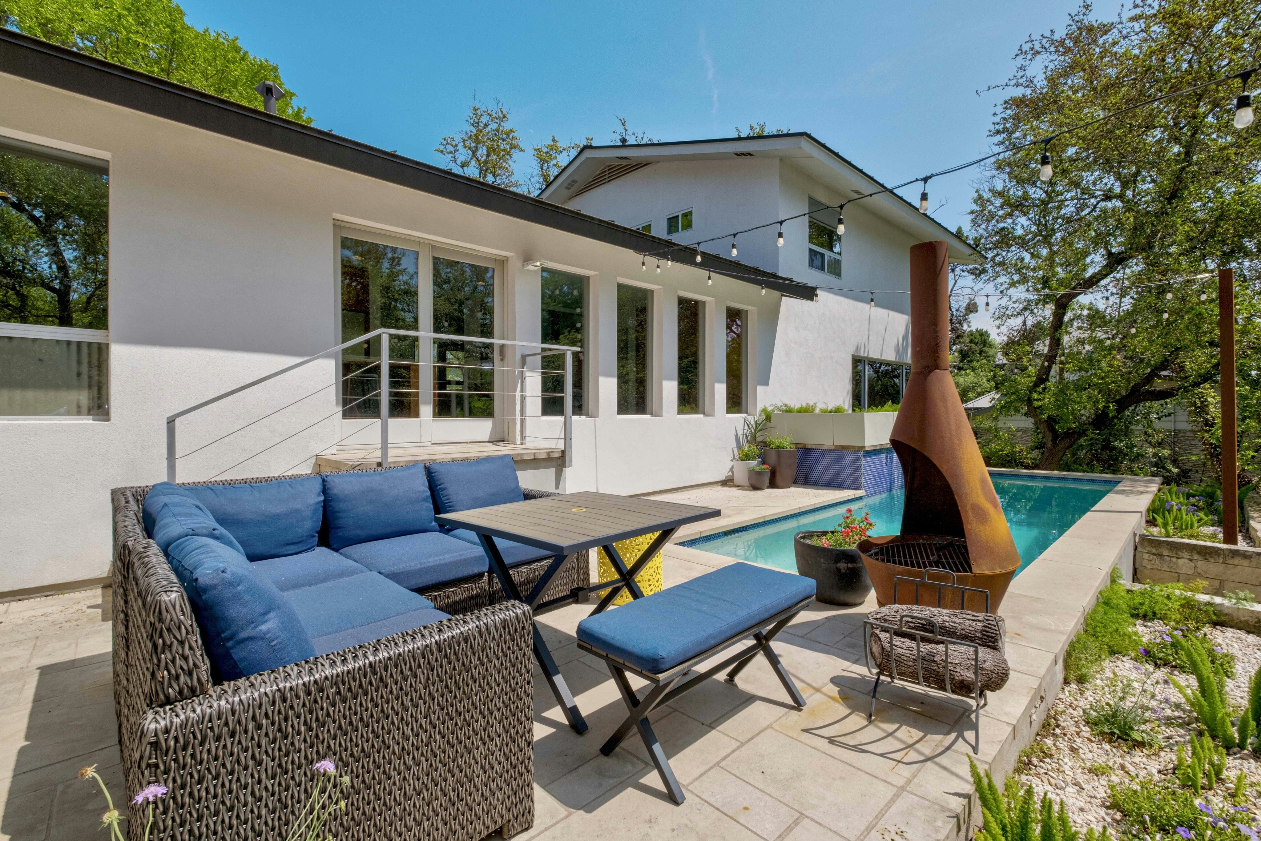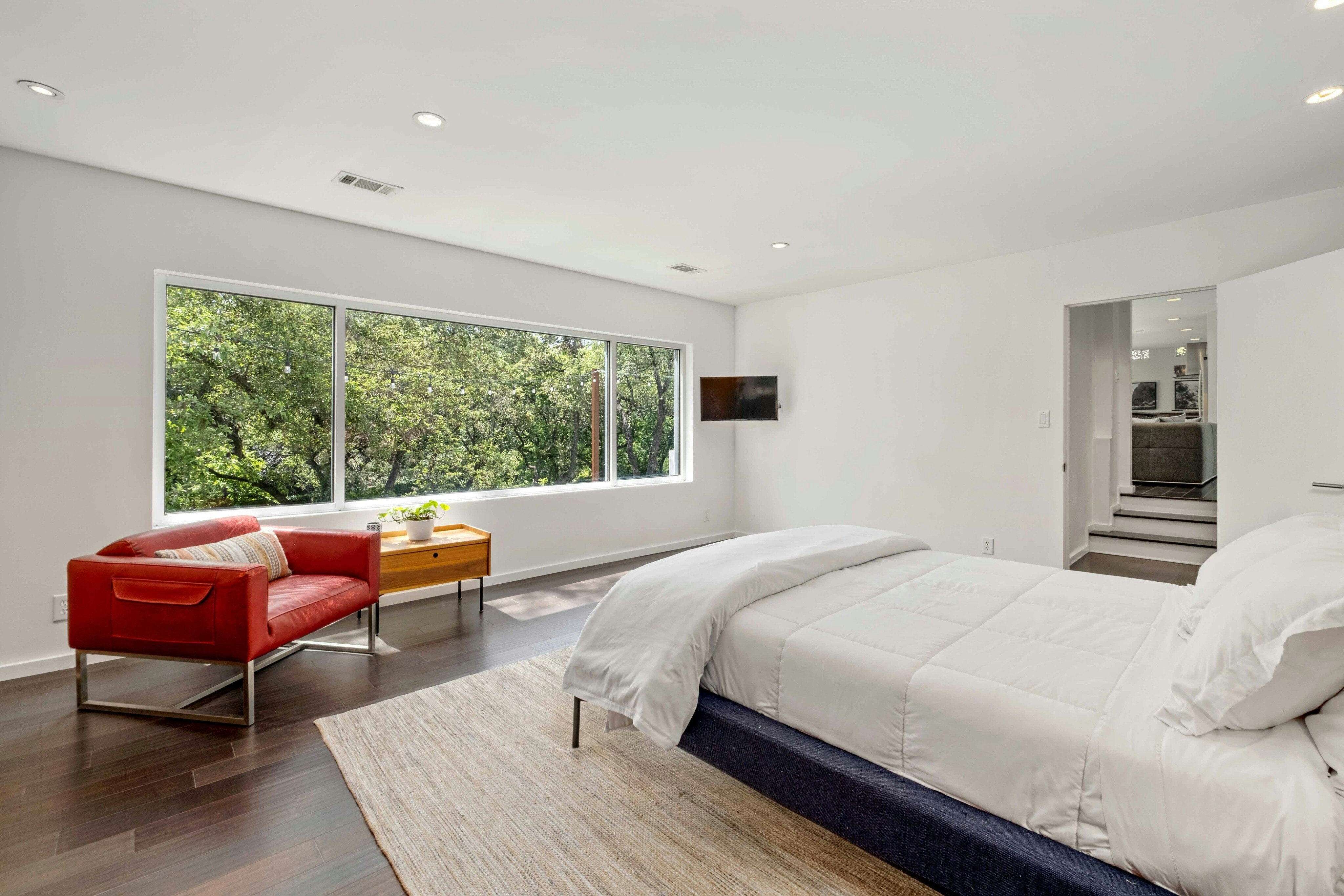 This Westwood stunner showcases a sophisticated addition and remodel by architect Erik Gonzalez of Sago International. The 4 bedroom, 3.5 bath residence includes a dedicated office, formal living, expansive dining area, and a spacious great room highlighted by a dramatic wall of glass overlooking the park-like 0.41-acre yard and pool. The primary suite is located on the main level with three additional bedrooms and two bathrooms upstairs. Ideally situated with easy access to downtown Austin, Zilker Park, shopping, and dining. Convenient to H-E-B, Trader Joe’s, Swedish Hill, Texas Honey Ham, and more. Zoned to top-rated Eanes ISD schools: Eanes Elementary, Hill Country Middle, and Westlake High.